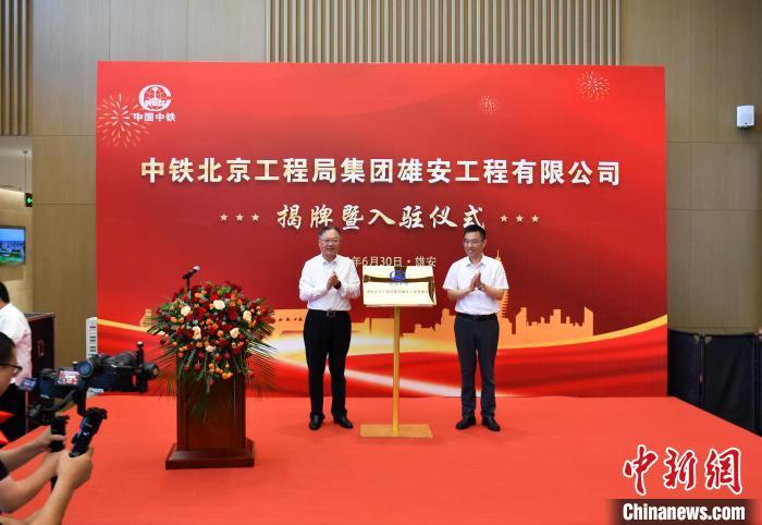 图为6月30日,中铁北京工程局集团雄安工程有限公司整体搬迁至雄安新区工作完成,举办揭牌暨入驻仪式。 韩冰 摄