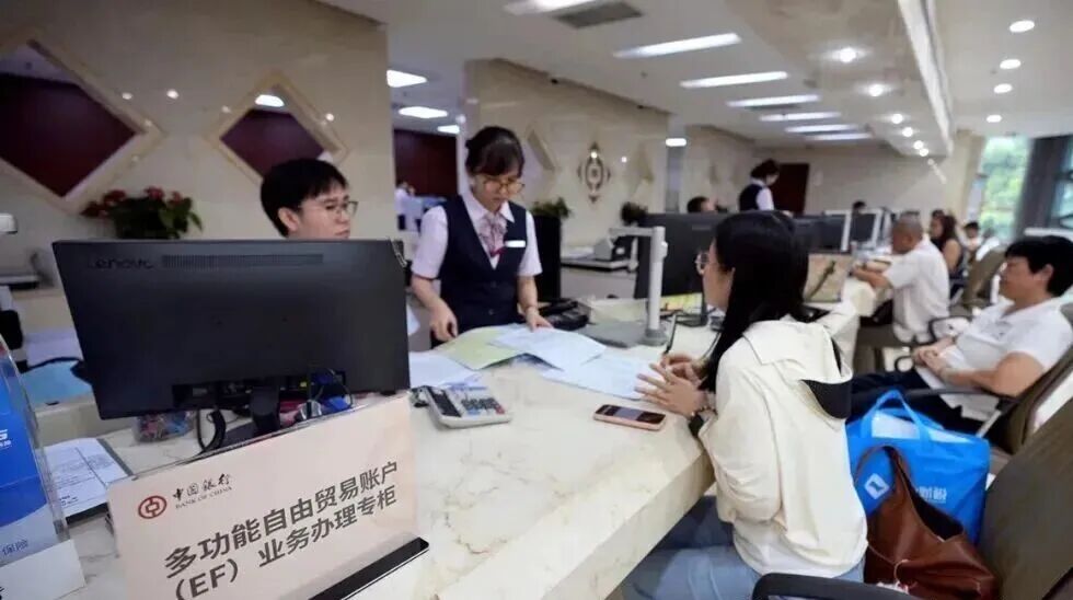 顾客在中国银行海南省分行多功能自由贸易账户(EF)业务办理专柜前咨询。海南日报全媒体记者 张茂 摄